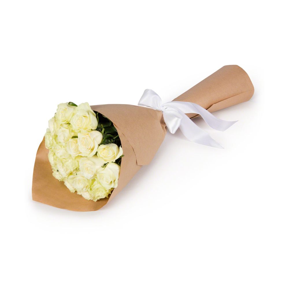 Букет из 21 белой розы в крафте