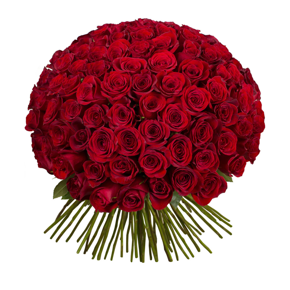 Роскошный букет из 101 свежей красной розы — высшее признание в любви.