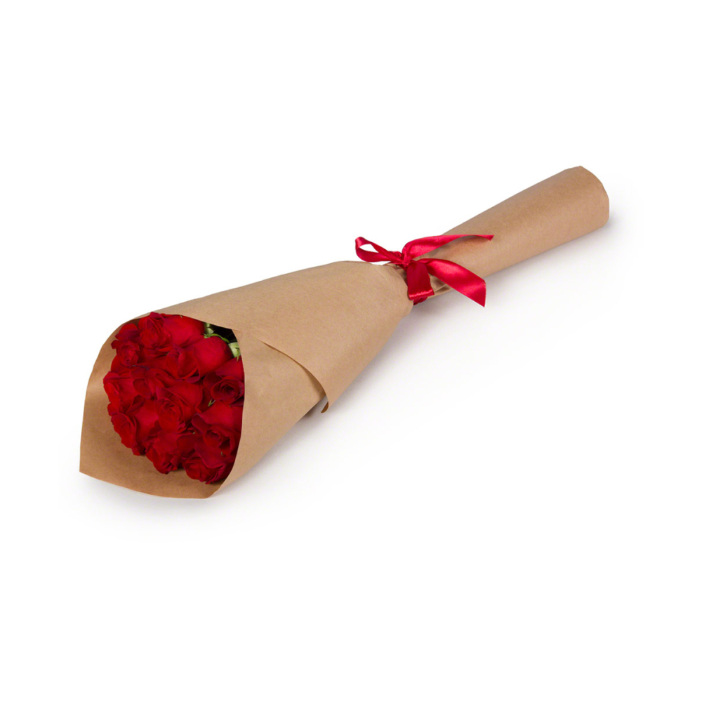 Элегантный букет из красных роз в экологичной крафтовой упаковке — это современное проявление искренних чувств.