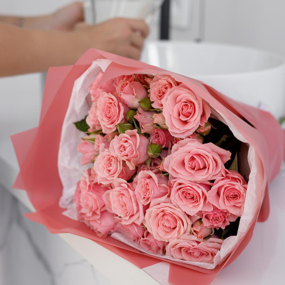 Букет из 9 розовых кустовых роз – нежность в каждом лепестке