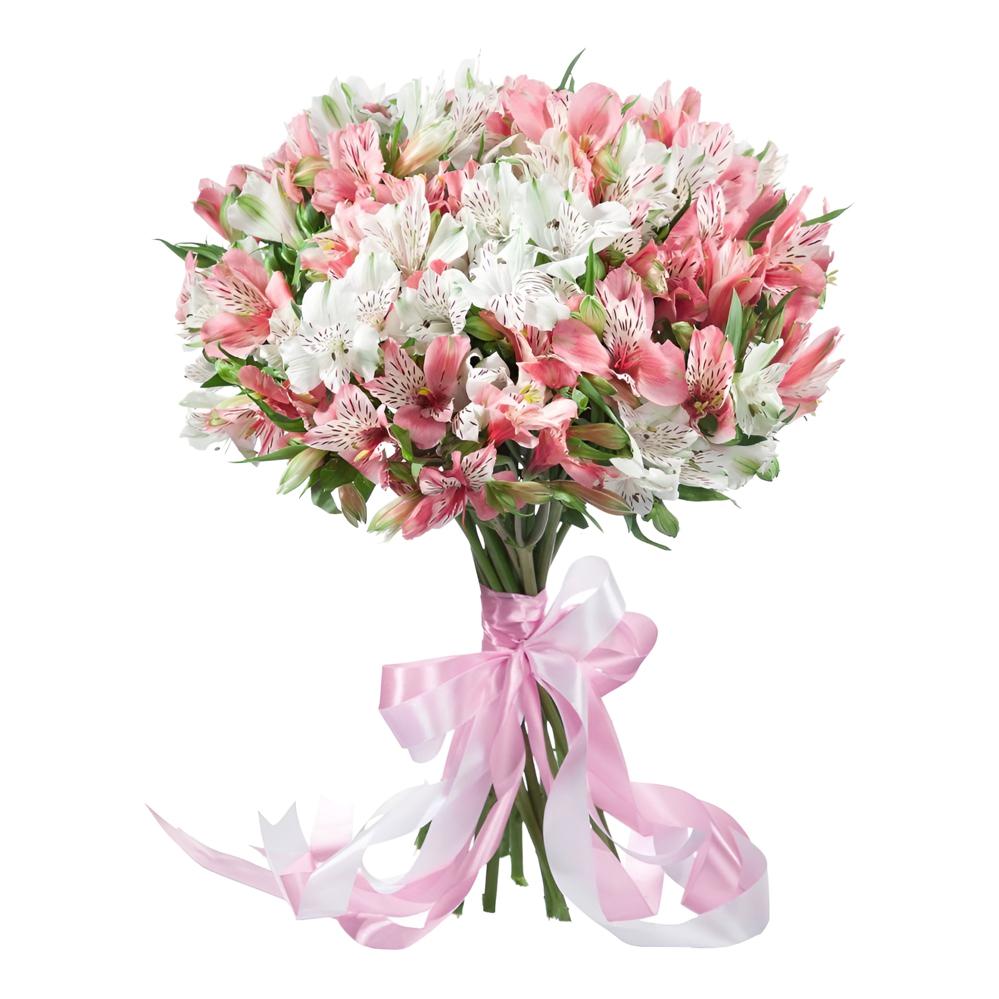 Букет «Нежность» – трогательное сочетание белых и розовых альстромерий