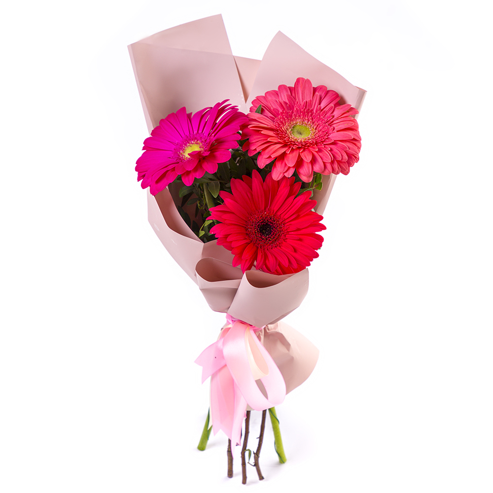 Жизнерадостная мини-композиция из 3 свежих гербер разных цветов – воплощение солнечного настроения. Идеальный выбор для небольшого, но выразительного подарка. Доставка цветов Нефтегорск гербер.