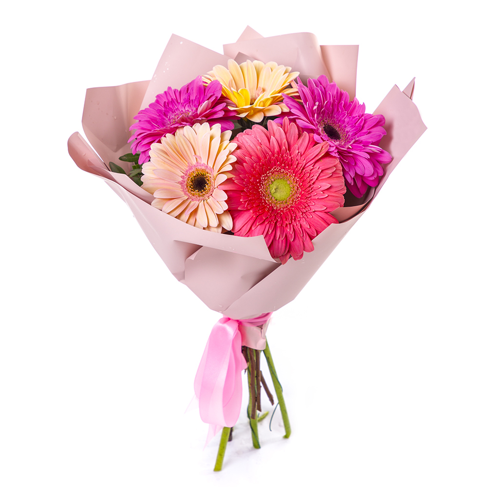 Яркий букет из 5 разноцветных гербер – солнечное настроение в подарок