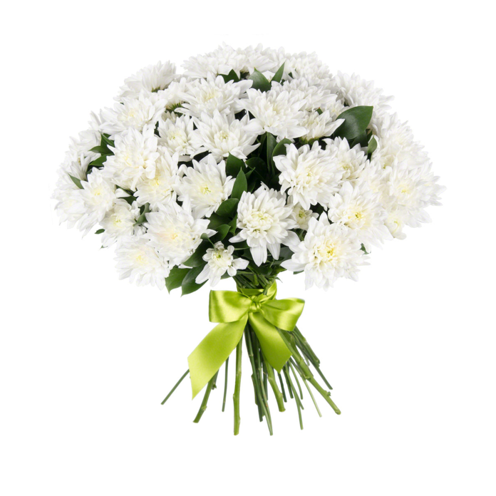 Нежный букет из белоснежных хризантем «Белый ангел» воплощает чистоту и совершенство.