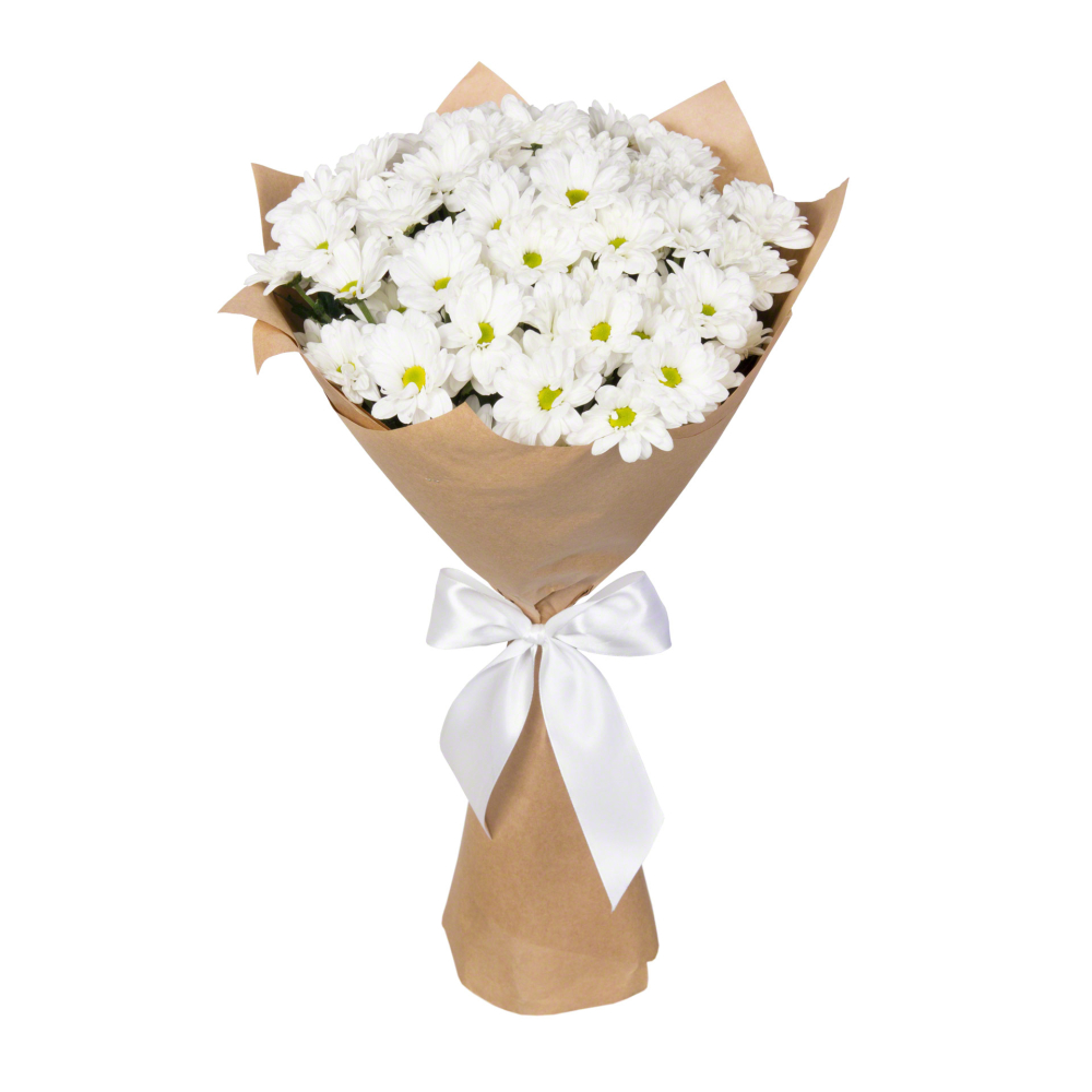 Пышный букет из 11 хризантем в крафт-бумаге – элегантность в каждом лепестке